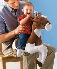 ¿Por qué no hacerles el paseo todavía más entretenido? Po-Knee es un caballito, aunque viene también en versión burro, búfalo o vaca, que se sujeta a la pierna con unas tiras de velcro.