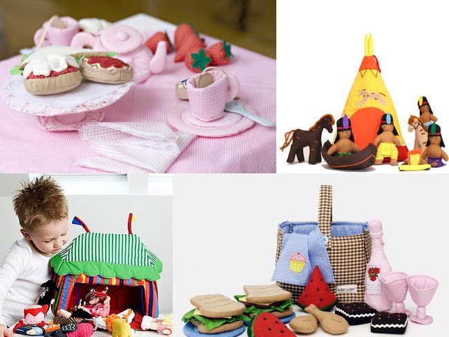 Además del set de té se pueden encontrar muchos otros juguetes blanditos para inspiran en los niños el juego simbólico. Desde un campamento indio, hasta un set de picnic, una granja, un set de pesca, una casa de muñecas... en fin, os invito a visitar la web de Oskar & Ellen porque descubriréis cosas muy bonitas para todas las edades.