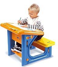 Para niños que disfrutan con esta actividad, Smoby ofrece un pupitre en el que se sentirán muy cómodos. Tiene dos caras, puede elegir la superficie con la que pintar con rotulador o la pizarra para dibujar con tiza.