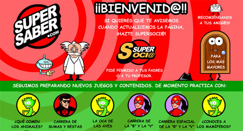 Esto es lo que propone la web Supersaber.com, que con amenos juegos enseñan o recuerdan a los niños y niñas cuestiones que van aprendiendo en el colegio acerca de todas esas temáticas.