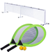 El Mega Tennis incluye 2 raquetas gigantes con el mango blandito, 2 pelotas, la red de 3 metros de longitud y 60 centímetros de altura, los postes para sujetarla y la bomba para inflar las pelotas, ya que éstas están pensadas para ser usadas por nuestros pequeños.
