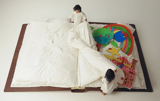 La cama con forma de libro es una creación de la fotógrafa japonesa Yusuke Suzuki, que además de cama para dormir es también un juguete en sí mismo, y de lo más creativo. Se pueden crear figuras y colocarlas en las páginas para que los niños se inventen sus propias historias y se sientan partícipes de ellas.