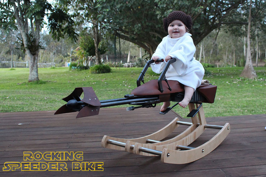 Un crack. Eso es lo que es este hombre que ha decidido regalar a su hija, en su primer cumpleaños, una "Speeder Bike" de Star Wars a modo de caballito para que se monte y se balancee cuando quiera.