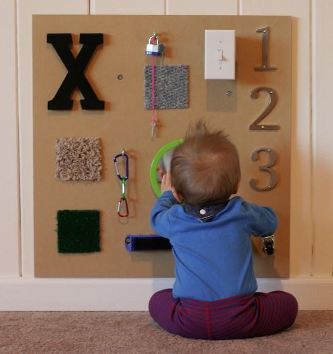Una buena idea que se la ha ocurrido a una madre de dos niños, autora del blog Fun at home with kids es fabricar con sus propias manos un tablero sensorial para el bebé.