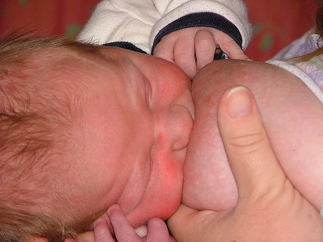 Poner al bebé al pecho para que succione cuanto antes mejor.