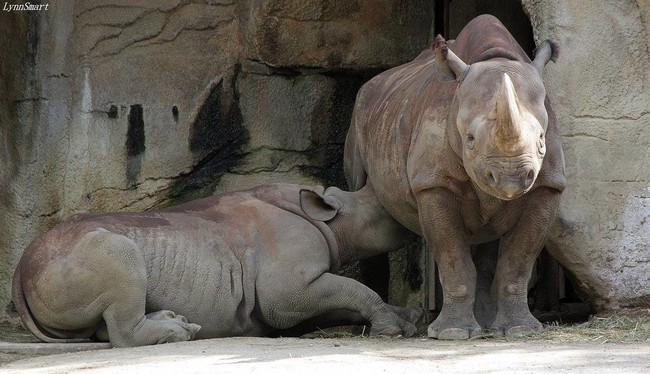 Todo comenzó cuando el Zoológico y Jardín Botánico de Cincinnati compartió en su página de Facebook una fotografía de Seyia, una madre rinoceronte, en la que aparece amamantando a su cría Kendi, que como podemos observar en la fotografía, ya es bastante mayor.