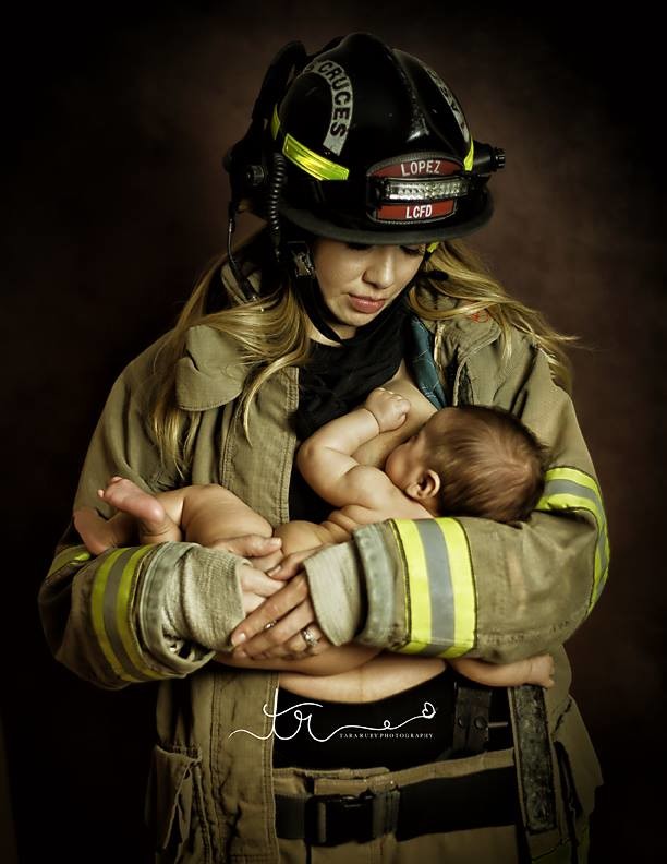 En febrero vi la foto. Me gustó, porque mezclaba la rudeza que puede llegar a tener una mujer bombero con la fragilidad y pureza de un bebé siendo alimentado. Una mujer preparada para el peligro con un bebé que necesita que todo esté en calma.
