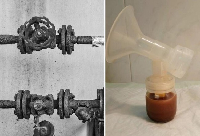 Síndrome de las tuberías oxidadas: aspecto de la leche extraída al tercer y al sexto día