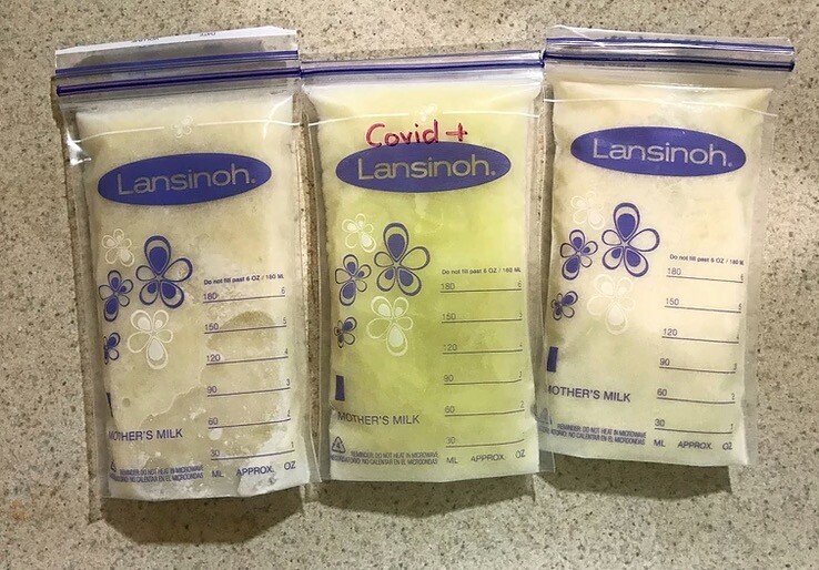 Cuatro días después de dar positivo comenzó a extraerse leche. Cuenta que en ese momento no le prestó atención al color amarillo verdoso que tenía. Simplemente la embolsó y la colocó en el congelador. Al congelarse, la leche se oscureció.