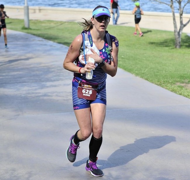 Jaime Sloane es una sargento de la Fuerza Aérea de 34 años que dió a luz a su segundo bebé hace siete meses. Hace unos días participó en un Ironman 70.3 (también conocido como medio ironman) en Tempe, Arizona, una carrera de triatlón de media distancia para la que se preparó duramente en los últimos meses después de ser madre.