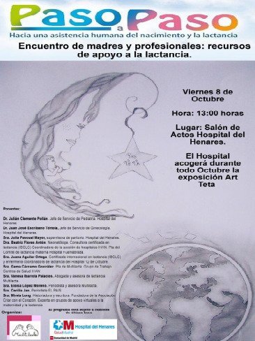 La Asociación Multilacta, en colaboración con el Hospital del Henares, de Coslada, en Madrid, organiza para celebrar la Semana de la Lactancia, que en España las asociaciones suelen conmemorar en estas fechas, un encuentro al que me han invitado y que quiero compartir con nuestros lectores: Encuentro de madres y profesionales sobre los recursos de apoyo a la lactancia.