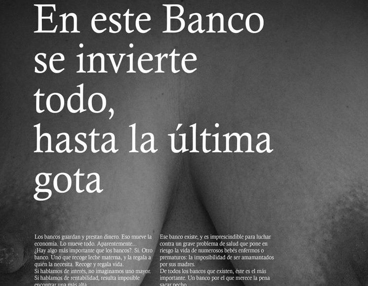 La idea está centrada en comparar los bancos "tradicionales", donde se guarda el dinero, con los bancos de leche humana, donde se guardan cosas aún más importantes. Los textos que acompañan las gráficas no tienen desperdicio.