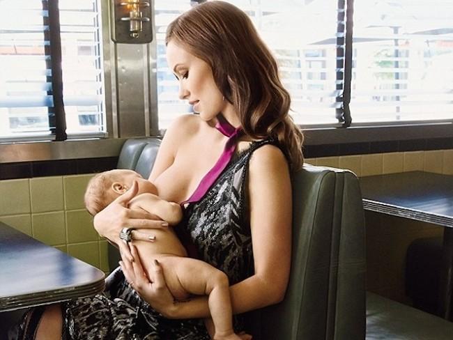 Una de las imágenes de esta semana ha sido la de la actriz Olivia Wilde, a quien recordaréis por su papel de Thirteen en la serie de televisión 'House', quien posa amamantando a su hijo en un típico dinner americano para apoyar la lactancia materna en público.