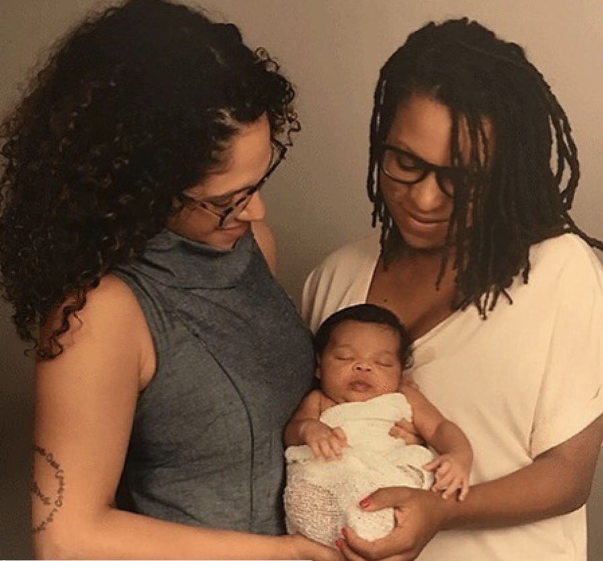 "Todos en la sala de partos fueron muy comprensivos y estaban muy intrigados, porque nunca antes había vivido un situación similar. Después de una hora de piel con piel con Tiffany y de que ella le diera el pecho, le amamanté yo. Y así durante las siguientes tres semanas:, cada vez que Orion comía, sus dos mamás le dábamos el pecho, siempre Tiffany primero, y después yo. Trasncurridas tres semanas pudimos alternarnos en las tomas sin que la lactancia se resintiera".