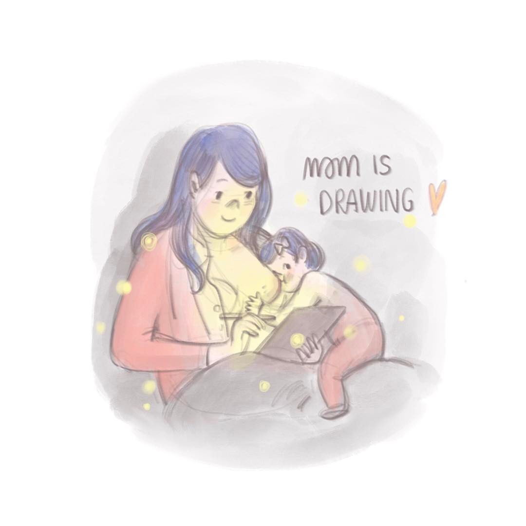 Ahora lo comparte con mucha más gente a través de sus cuentas de Instagram y Facebook bajo el título de "Mom is Drawing" (mamá está dibujando) en la que comparte su experiencia con la lactancia materna a través de preciosas ilustraciones. En lugar de fotos, ella lo cuenta todo con dibujos.