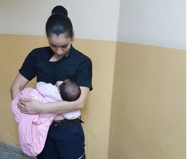 La bebé lloraba desconsoladamente y la oficial de policía, madre de otro bebé lactante de 11 meses, no se lo pensó dos veces y se puso a la pequeña al pecho ante la atónita mirada de todos.