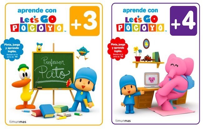 Los cuadernillos para aprender inglés “Pocoyó Let’s Go. Libro de actividades” (+3), (+4) son de Timun Mas, tienen 40 páginas cada y cuestan 4’95 euros cada uno.