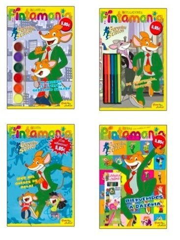 En alguna ocasón os hemos hablado de Geronimo Stilton, bien de sus dibujos animados, bien de sus libros. Ahora Geronimo Stilton nos presenta libros para los más pequeños. Se trata de una serie de libros para colorear, en la colección "Pintamanía" de Planeta Junior. Son cuatro títulos que incluyen rotuladores, ceras, acuarelas o pegatinas.