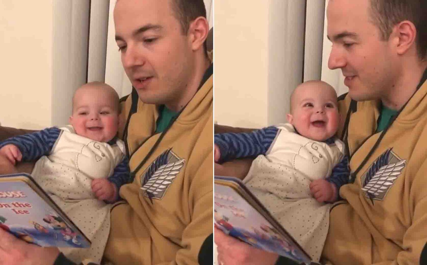 Al ser un libro del popular Mickey Mouse y sus amigos, el padre decidió darle un toque especial y comenzó a fingir las voces de los distintos personajes. La reacción de la bebé al escucharle, nos ha inundado de ternura: