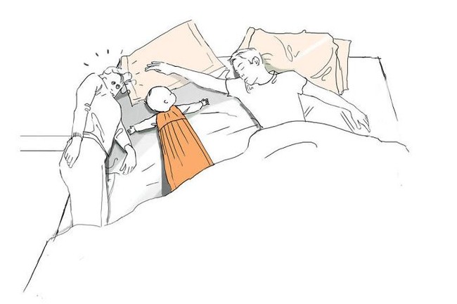"Cariño, esta noche cuando se duerma el niño podríamos ver un rato la tele juntos, como hacíamos antes", le dices. Ambos acordáis que así será, y mira que lo intentáis los dos, pero no se sabe por el influjo de qué extraña fuerza extraterrestre cuando estáis a punto de tocaros, cuando vais a articular las primeras palabras, os desmayáis o algo así y acabáis como en la imagen.