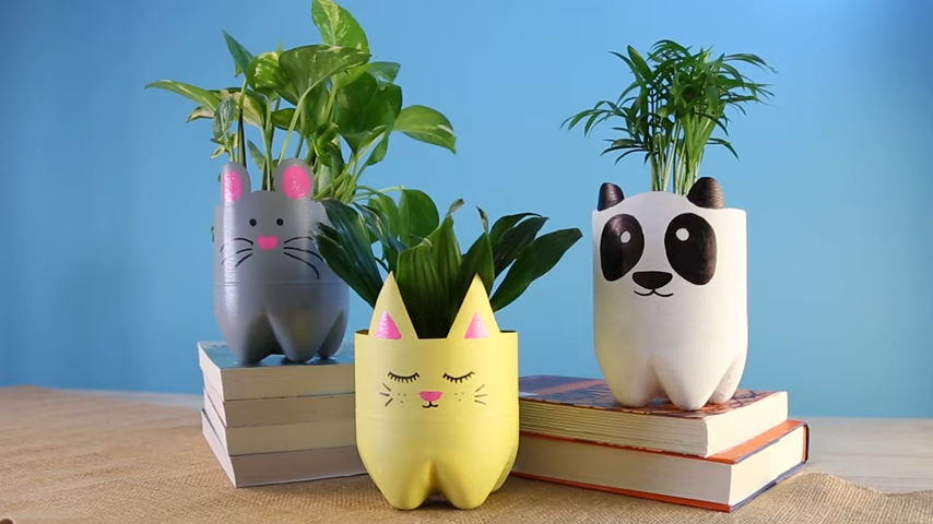 Ejemplo de esto son las botella de plástico que, con un poco de creatividad, podemos convertir en una manualidad que resulta útil y bonita: unas divertidas macetas de animales.