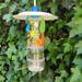 También, podemos hacer un tejadillo para dar sombra a los pájaros mientras comen. Para ello utilizaremos un plato desechable de tamaño pequeño, que debemos agujerear por el centro para meterlo a través la parte superior de la botella.