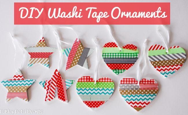 La idea de hoy es de Paisley Petal Events, donde un niño decora los coranzones y estrellas que luego colgarán en el árbol. ¡Feliz decoración con washi tape!