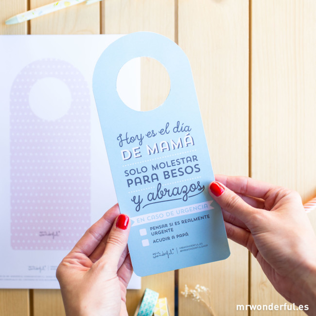 Es de Muy Molon, que siempre hacen cosas bonitas, y está inspirado en los carteles de "no molestar" de los hoteles. Porque mamá también se merece un descanso.