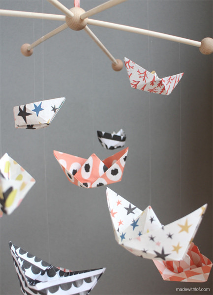 Si hace pocos días os animaba a hacer una cuna colgante para tu bebé, hoy os quiero presentar un proyecto precioso que nos enseñan a hacer las hermanas Lof en blog Made with lof: un móvil de cuna hecho con barquitos de papel
