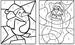 Los dibujos tienen distintas áreas para colorear con una suma cada uno. El resultado de la suma será el color del que tengamos que rellenar el área.
