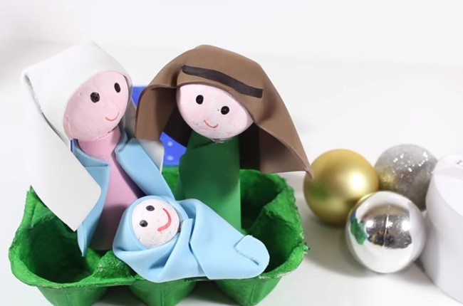 Desde Internet DIY nos proponen esta sencilla idea para elaborar nuestro Portal de Belén. Tan solo vamos a necesitar una huevera de cartón vacía y elementos de papelería, como goma eva, silicona caliente, bolas de porexpam para hacer las cabezas y pintura acrílica para decorar.