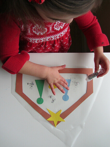 Otra idea de un Belén en forma de vitral es la que hemos visto en No Time for Flashcards, donde hicieron una versión muy sencilla con siluetas, en la que colocaron purpurina para decorarlo.