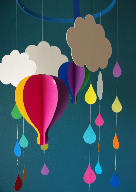 Siguiendo con la temática colorida, encontramos este precioso móvil en Happiness is Homemade, inspirado en los globos aerostáticos.