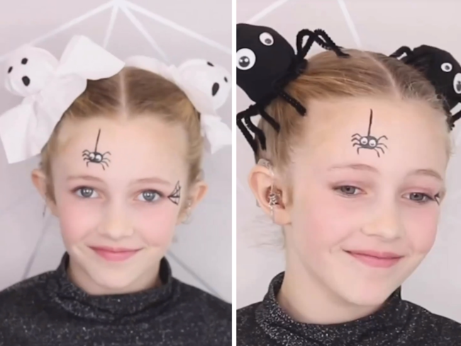 Para estos dos peinados que nos proponen desde Sweethearts Hair solo necesitas la misma base: dos trenzas convertida en moños, que posteriormente serán decorados, ya sea como fantasmas o como arañas.