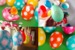 Cubre los globos con los cuadrados de colores desde el nudo hacia abajo tras aplicar con el pincel almidón líquido. Hay que intentar tapar toda la superficie blanca del huevo (excepto por los círculos de decoración, claro está).
