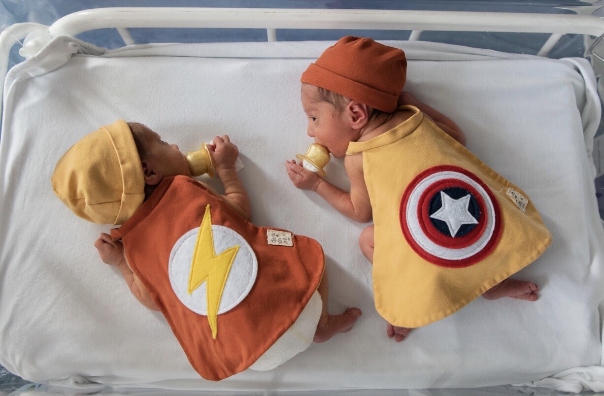 Hoy sábado han vuelto a sorprender a los padres de los 15 recién nacidos de la UCI, al ver a sus hijos vestidos de animalitos y superhéroes.