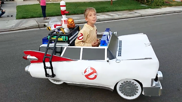 Viene haciéndolo hace algunos años y se supera en cada nuevo intento. Este año, sometió a votación el disfraz que haría y los amigos de la familia eligieron el mítico vehículo de la película Cazafantasmas.