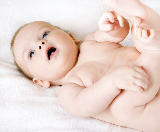 - Con una mano, sujeta al bebé por los pies y levántale las piernas hasta que las nalgas se eleven y puedas retirar el pañal sucio con la otra mano.