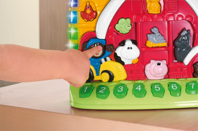 Pero si ya es más mayorcito, los sonidos deben ser diferentes. El interés de tu bebé por el entorno crece conforme se desarrolla, en esta etapa se entusiasma con lo que oye, un claro ejemplo son los sonidos de animales. La Granja sonora bilingüe de Chicco es perfecta para esta etapa. El maestro osito enseña a los niños el mundo de los animales. Los niños aprenden mediante diversos modos de juego: números, nombres de animales, sonidos de animales, colores, adivinanzas y melodías, en tres niveles de dificultad.