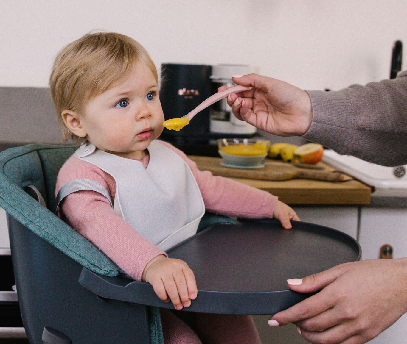 Una vez que el bebé está preparado, se recomienda ir introduciendo los alimentos de uno en uno de forma exclusiva durante 2-3 días para comprobar la tolerancia y observar. Para ello, el bebé ha de estar siempre incorporado, en una silla o trona, y bajo permanente supervisión para una total seguridad.