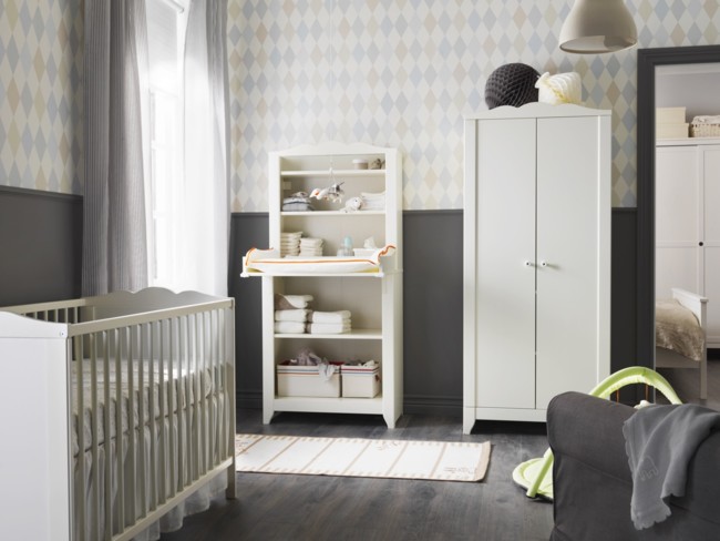 A estas piezas básicas, podéis añadirle una cómoda con cajones para almacenar su ropita… y, sobre ella, colocad un pequeño colchón. ¡Así también tendréis solucionado a la vez la zona de cambiador!
