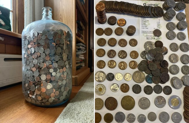 "¡Mi abuelo guardó su cambio en esta jarra de cristal durante 70 años y finalmente me dejará contarlo!", escribió emocionada la chica, quien señaló en otro comentario que su abuelo actualmente tiene 91 años y que es posible que guardara más monedas en otros sitios, ya que algunos usuarios comentaron que les parecían pocas monedas para tantos años.