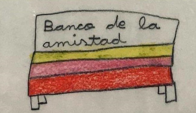 "Hola Ana, me gustaría que haya un banco de la amistad en el patio. Tiene que ser de colorines y un cartel que ponga 'banco de la amistad' para quien se sienta solo, se siente y alguien le vea sentado, y le pregunte '¿Quieres jugar conmigo?".