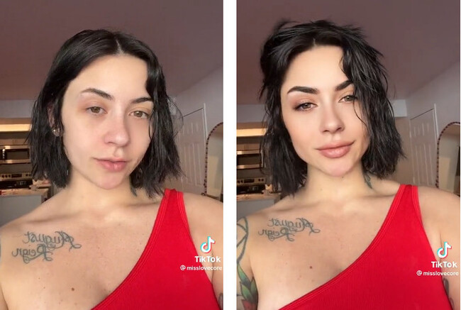 El filtro se llama "Bold Glamour" y la diferencia abismal con respecto a los que ya existían, es que no notas que se trata de un filtro al ponerte la mano en la cara (en los anteriores las pestañas o los labios gruesos se veían por encima de la mano). Aquí no: es extremadamente real, aunque hay que activarlo de forma manual y al menos TikTok no te lo aplica automáticamente sin tu consentimiento