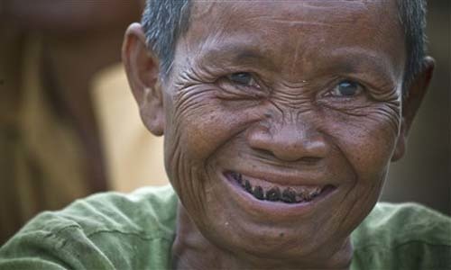 Las hojas de tabaco se mezclan con lima y betel, un estimulante natural que produce un zumo rojo brillante y que se ha usado durante siglos en la zona del Asia y el Pacífico. Se lían un manojo y se ponen esa mezcla en la boca durante largos períodos.
