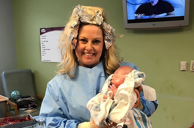 Pero apenas estaban colocándole el tinte cuando le llamaron para avisarle que el bebé estaba a punto de llegar. Y así como estaba, con el tinte y el papel de aluminio en la cabeza, corrió a recibir al bebé, porque cuando el deber llama, tienes que acudir.