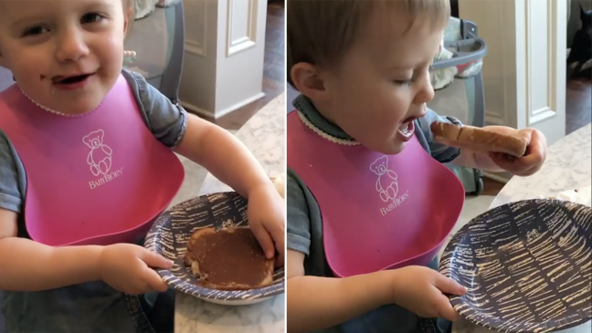 "La primera experiencia de Nutella de River. Debería haber sido con una crepa, pero el pan tostado era más fácil", lee el texto que acompaña el vídeo y en el que vemos a la pequeña probando su tostada con Nutella.
