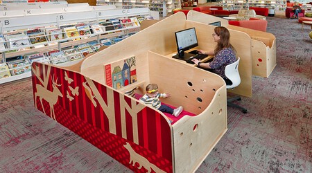 La biblioteca pública del Condado de Hernico, en Virginia, Estados Unidos, se ha vuelto viral por colocar cunas con espacios de juego adosadas a los escritorios en sus instalaciones para los padres y madres que acuden con sus bebés.