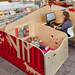 Por eso, cuando se planteó construir una nueva sucursal pensó en instalar estaciones de trabajo y juego para que los padres tuvieran un lugar seguro donde dejar a sus bebés, mientras ellos pudieran trabajar o buscar información en el ordenador.