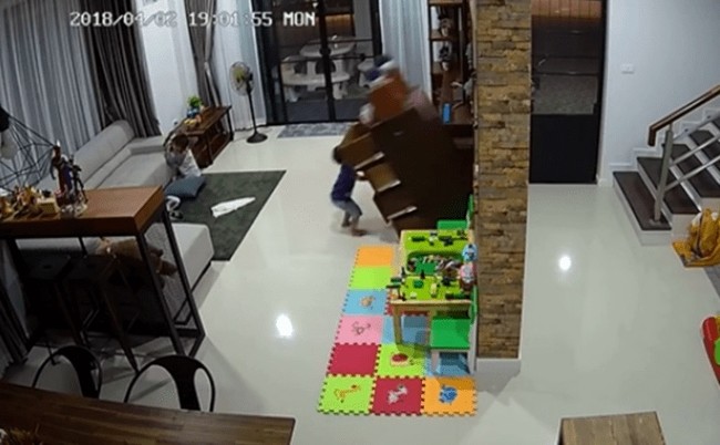 Viendo accidentes como el de este niño tailandés, es importante advertir a los padres acerca del peligro que tienen los muebles para los niños cuando no están bien anclados a la pared.